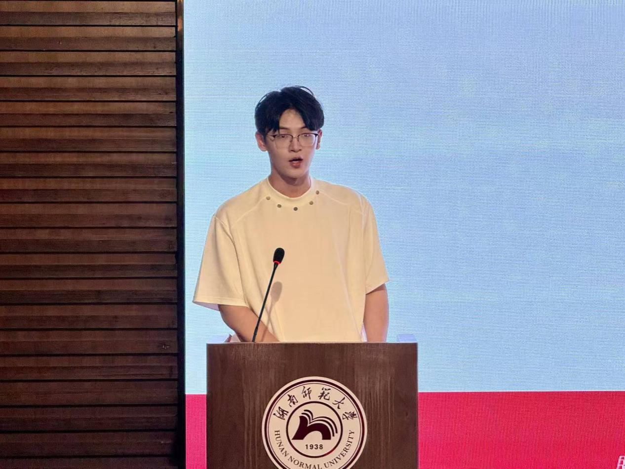教师代表吕道建向2025级新生的到来致以致以热烈欢迎与诚挚祝贺。他强调,青年学子当志存高远、胸怀家国,鼓励大家深入探寻湖湘文化底蕴,汲取精神力量,树立与时代同频的远大理想。谈及学习态度,他提出“博学慎思、守正创新”,希望学生既潜心钻研知识、锤炼扎实功底,又主动探索、培养批判性思维,在传承中寻求突破,期待与新生携手同行。