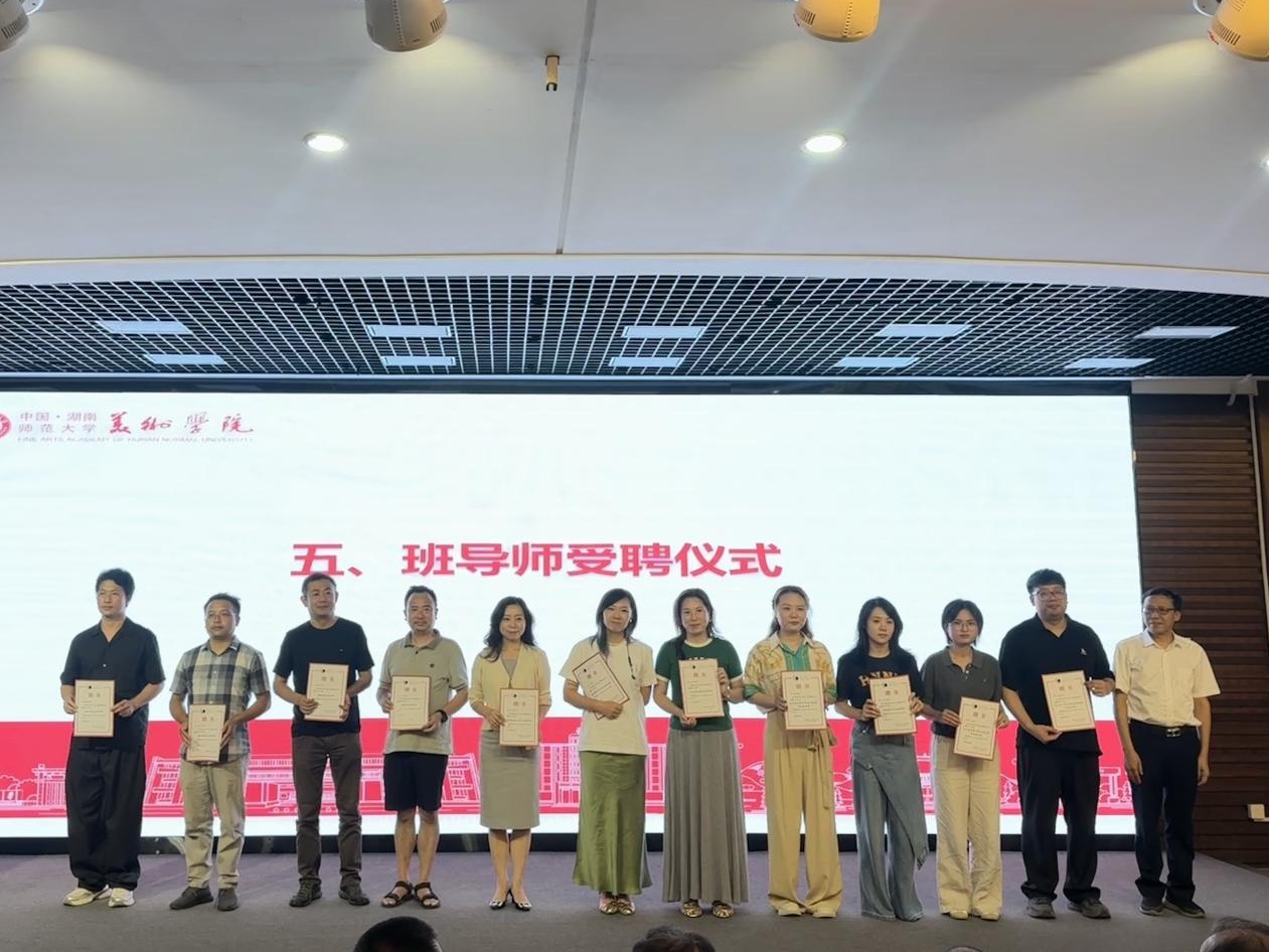 湖南省设计艺术家协会主席、院长李少波教授,院党委书记何勇,副院长刘湘东、江波、邓正付,各系主任,班导师、部分教师代表、各科室主任及2025级全体新生参加典礼。典礼由院党委副书记覃志斌主持。