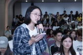 在交流环节,同学们围绕艺术创作的方法论与价值观积极提问。就“如何在艺术创作中协调个人艺术表达与社会议题介入”这一焦点问题,Ingrid LUCHE指出,创作中首要的是建立与材料的 “生命联结”,用心感知其特性、尊重其本质,再通过艺术手法实现价值转化,她的《Moonstep》等作品便是这一理念的生动实践。同时,她强调艺术创作不能脱离文化语境与时代背景,“要让作品与艺术史对话、与流行文化交融,在创作与生活之间找到平衡转换的支点——既保留个人独特的艺术语言,又能通过作品回应社会议题,让艺术真正成为连接自我与时代的桥梁。