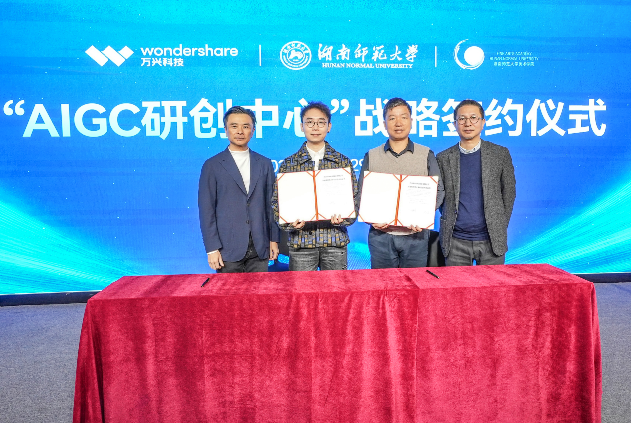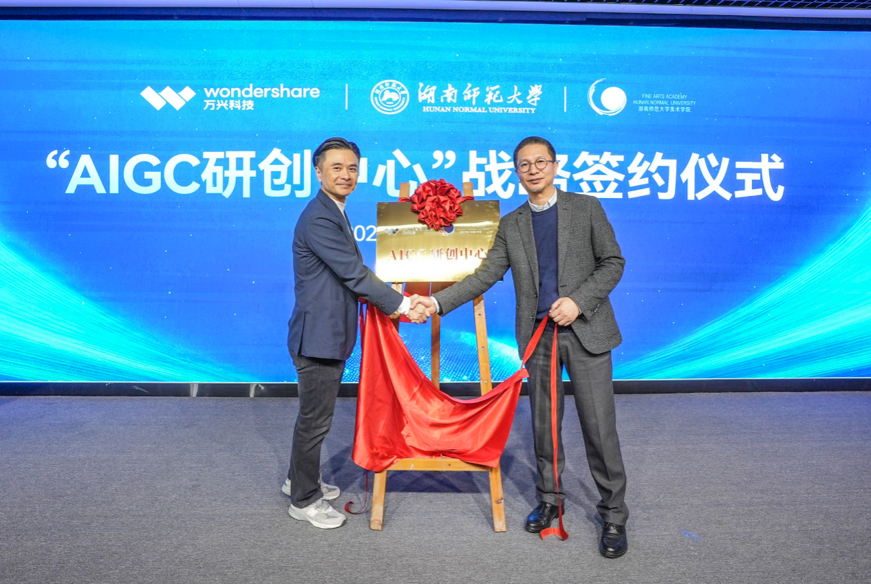 此次签约揭牌,是湖南师范大学美术学院与万兴科技发挥各自优势、推动“AI + 艺术”融合的重要实践,既为校企协同创新树立了新典范,也将助力数字创意产业发展,为人工智能时代的艺术创作与教育创新注入新动能。