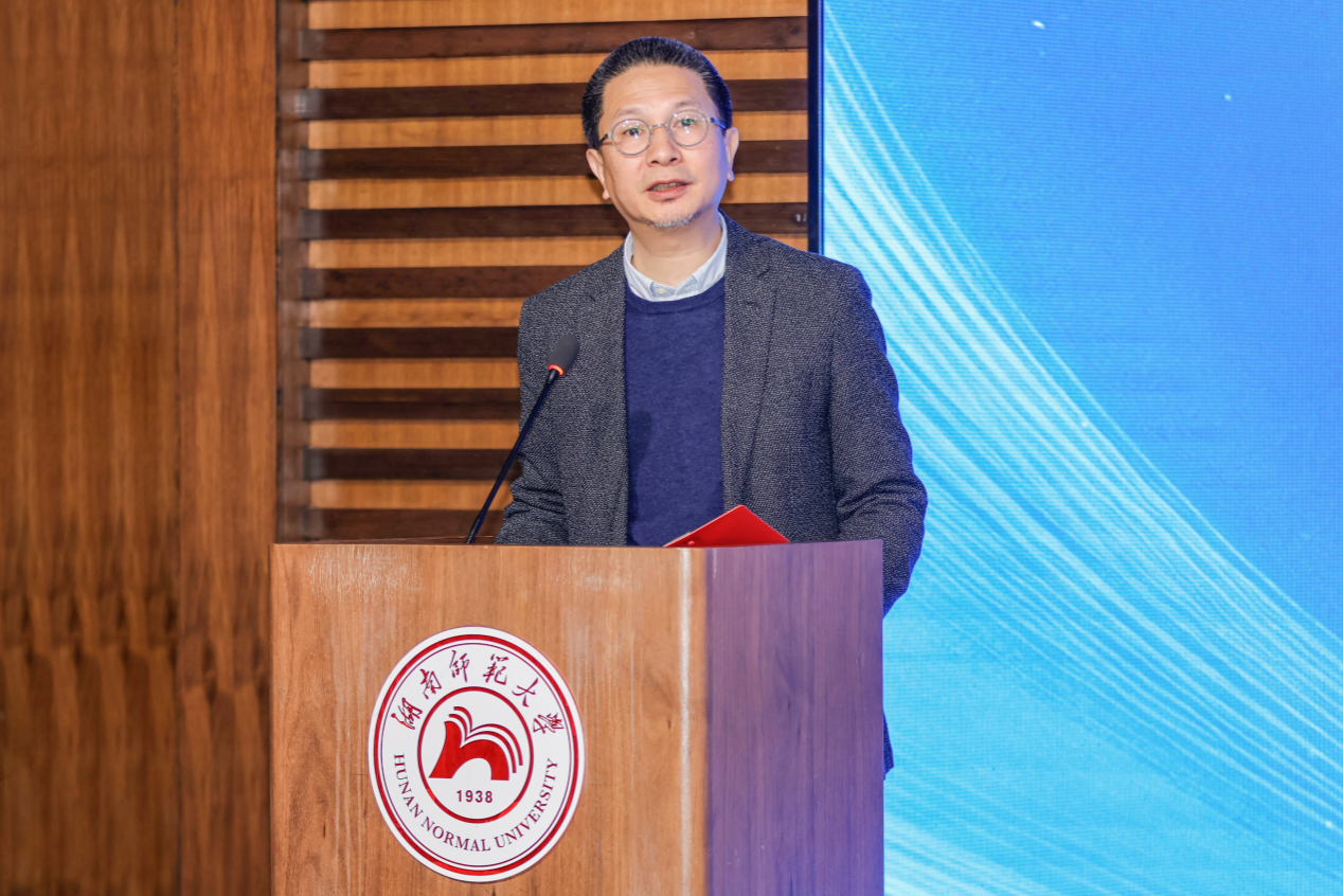 李少波代表学院致辞,他表示当前正处于艺术与科技交汇的关键节点,作为湖南省办学历史最长、首批获博士点的高等美术学府,我院拥有完整的学科体系与创新人才梯队。近年来,学院成果丰硕,不仅承担了国产大飞机、国庆70周年湖南彩车等标杆项目,还完成了衡阳1944抗战纪念馆、江永女书博物馆等重要文旅设计项目,且已与中南传媒、湖南博物院等企事业单位建立稳定合作。他强调,万兴科技作为全球数字创意领域领军企业,此次双方合作既是技术与艺术、产业与教育的深度融合,也是我院对新时代艺术人才培养模式的深度探索。未来双方将通过共建AIGC研创中心,依托“教师进企业、专家进课堂”机制,联合开发前沿课程、推进项目研发、促进成果转化,构建开放协同的创新生态,期待产出更多创新作品与合作成果。
