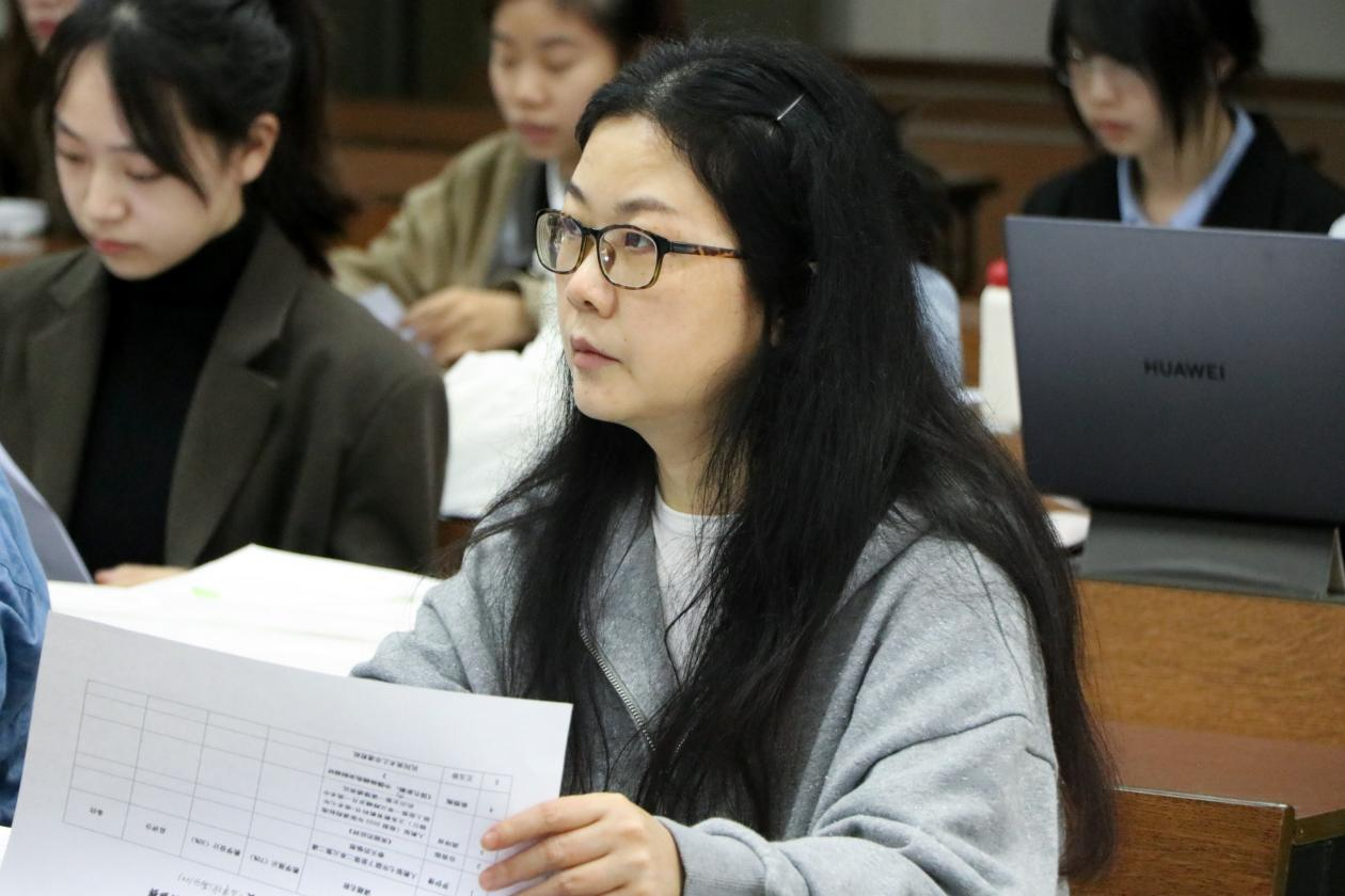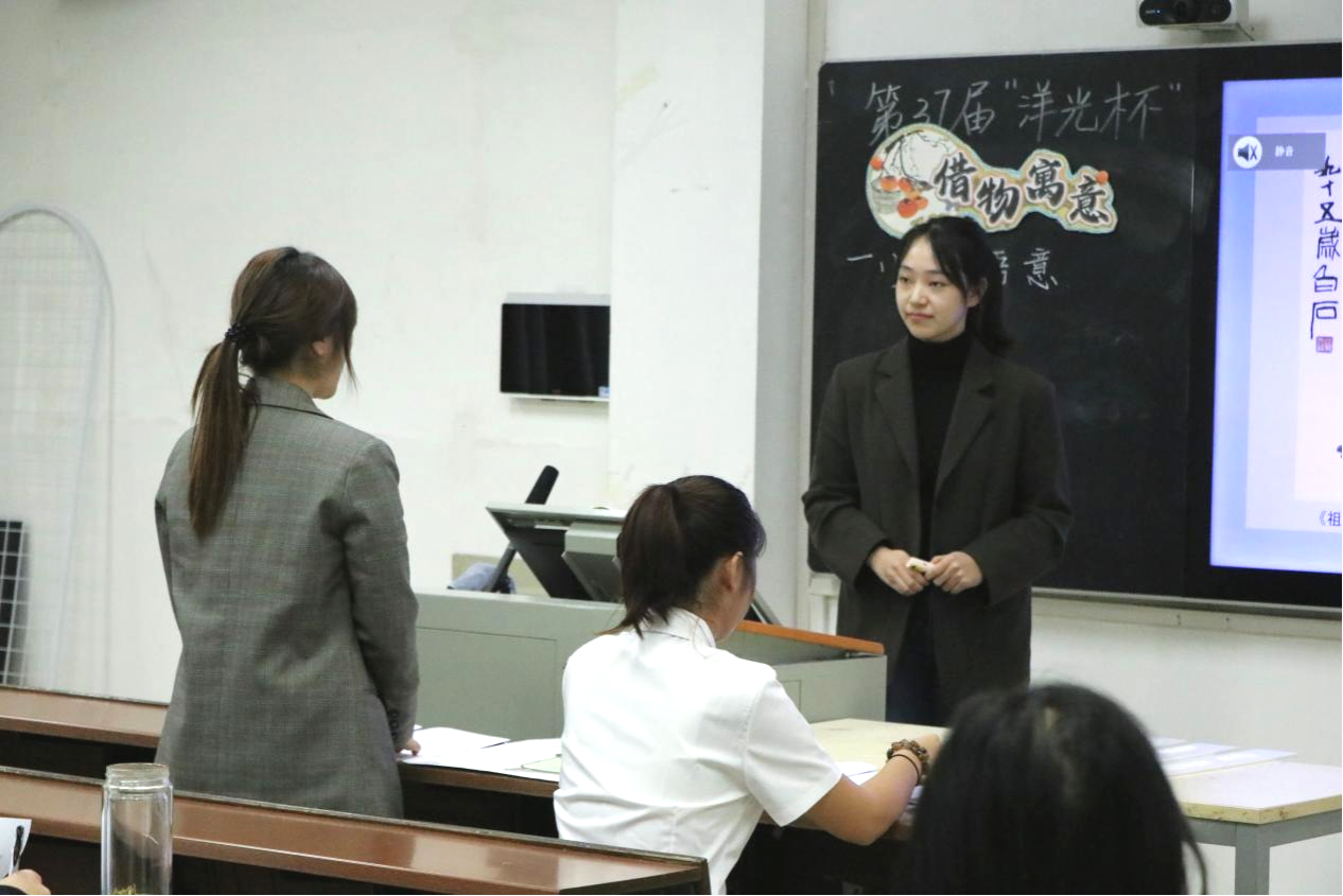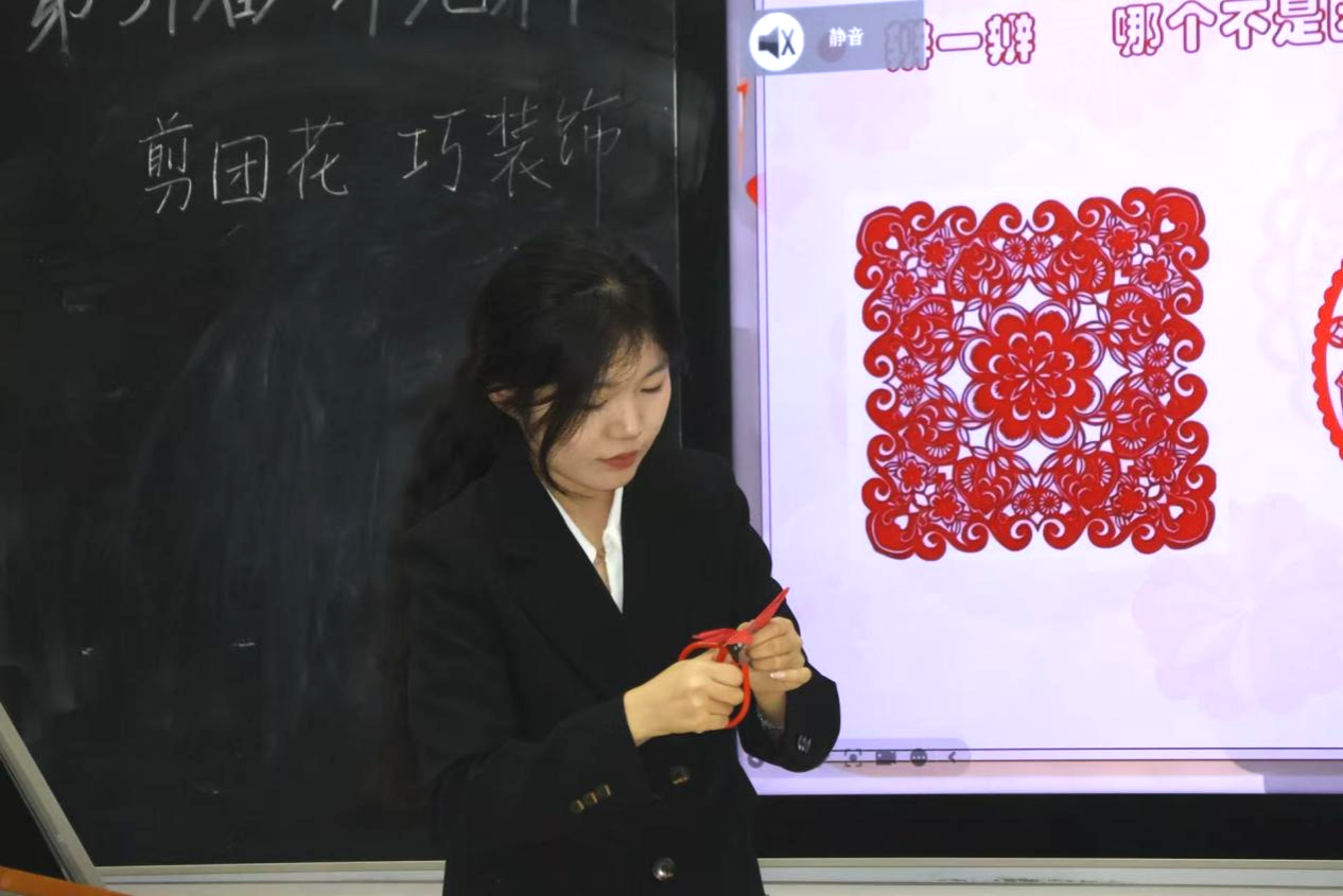 初赛第一阶段,选手们按照抽签顺序依次上台展示。在10分钟的微型课教学环节中,同学们充分运用了多媒体演示、黑板板书和现场示范等多种教学手段。教学过程中穿插了剪纸、非遗工艺和古诗词朗诵等趣味互动环节,带领学生在动手实践中体验传统文化的魅力。这些丰富多样的形式,不仅展示了选手们对教学内容的深刻理解,还体现了我院学子在教学融合与互动设计方面的创新探索。评委老师们从教学内容、教学方法、语言表达、教态、板书、课件设计及教学效果等方面进行了详细的评分与点评。