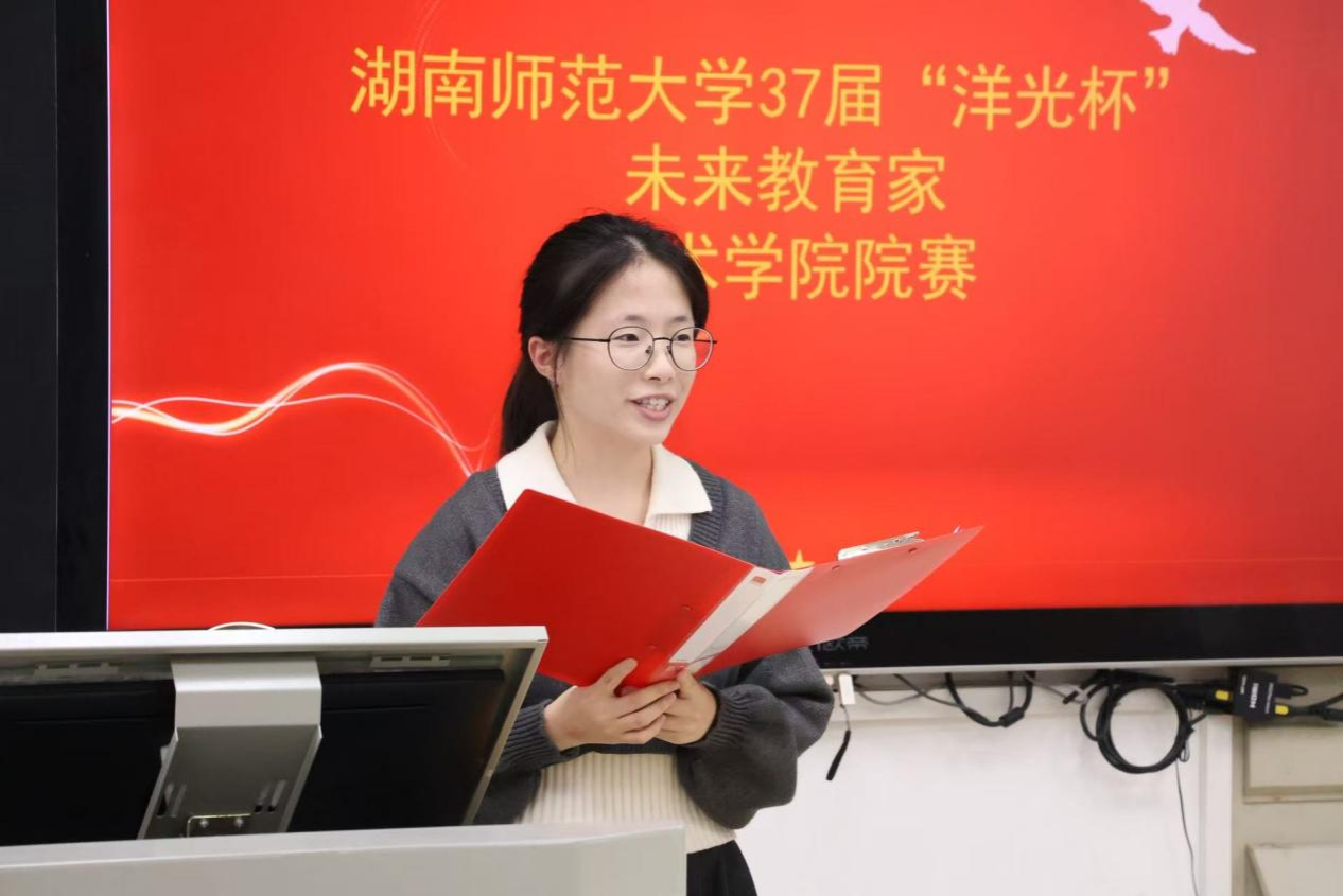 (通讯员 唐斯斯 戴芷睿 戴梓珺 袁嘉俊)2025年10月31日,美术学院第37届“未来教育家”初赛在设计楼208教室举行。本次活动邀请了副教授、硕士研究生导师伍英鹰老师,美术学系副主任王墨老师,美术学系教师朱娟老师担任评委。初赛由2023级美术学专业的邓菊丹同学主持。