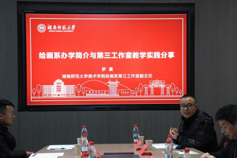 为深入探索以红色文化铸牢中华民族共同体意识的高校实践路径,深化美术师范专业育人模式,2026年1月4日上午,湖南师范大学美术学院与拉萨师范学院学术交流活动在美术楼二楼会议室举行。此次交流以“红色文化铸魂”与“美术语言育人”为核心,搭建起湘藏两地高校教育教学经验共享、携手共进的重要桥梁,为民族地区教育事业发展注入强劲动力。