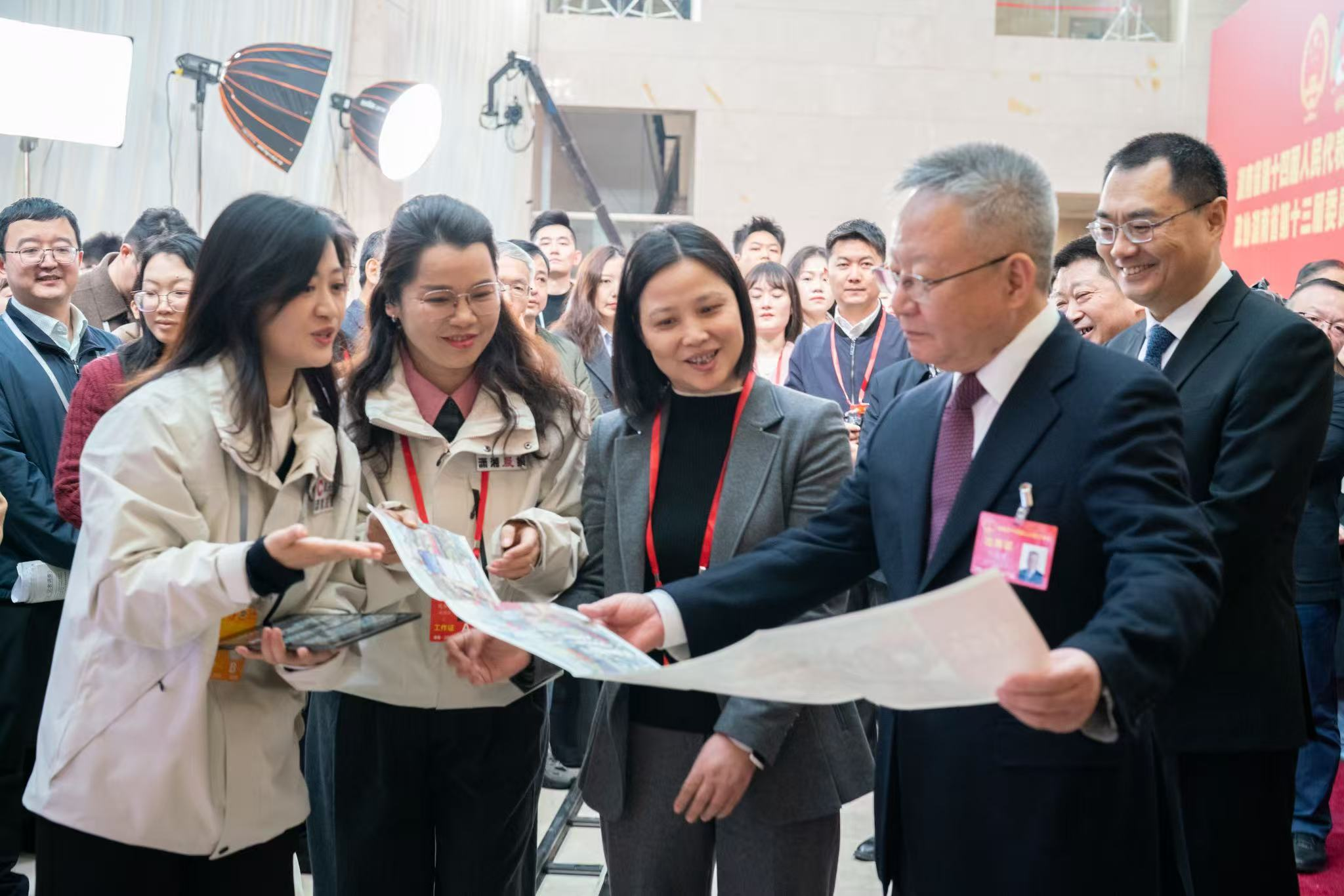 “很漂亮、很用心!与政府工作报告高度契合。”出席本次两会的湖南省政协委员邓朝晖评价说。省人大代表刘朝晖说看到自己的产品,感到很自豪,长卷设计得“挺好、太好、非常好!”。
