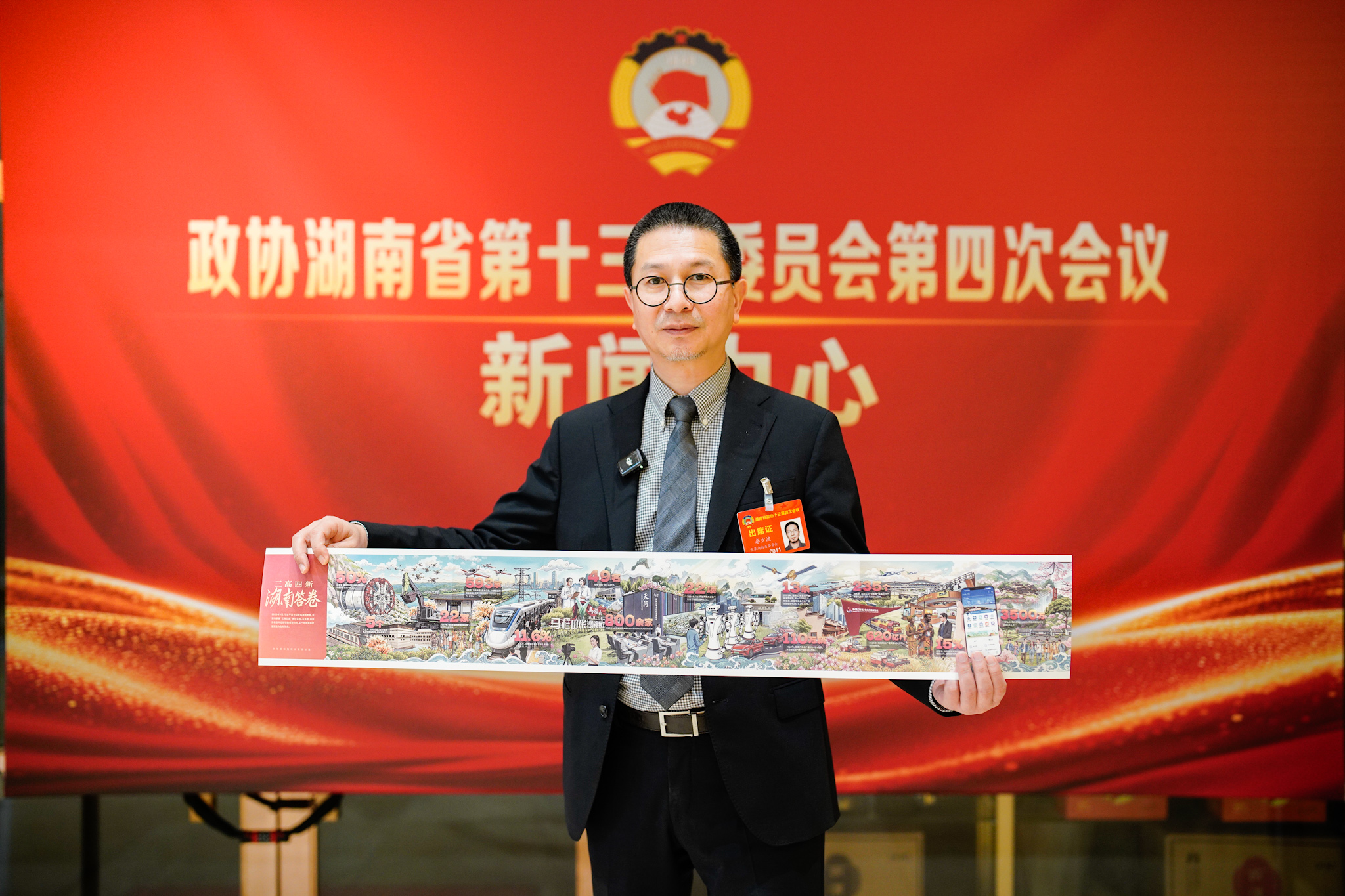李少波在接受潇湘晨报记者采访时介绍说:“长卷的创作过程既像绘制一张藏宝图,集中呈现了新增千亿级企业、百亿级企业、小巨人企业数量、新增研发机构、重点产业链、贸易国家与地区、粮食总产量等最重要,最典型的发展数据,但在这些数据背后还有大量的令人激动的发展成绩。因此,长卷也是湖南人民为实现‘三高四新’美好蓝图交出的一张漂亮的成绩单。成绩单的背后不仅仅是艺术创作的呈现工作,更是对湖南发展成绩的一个礼赞。”