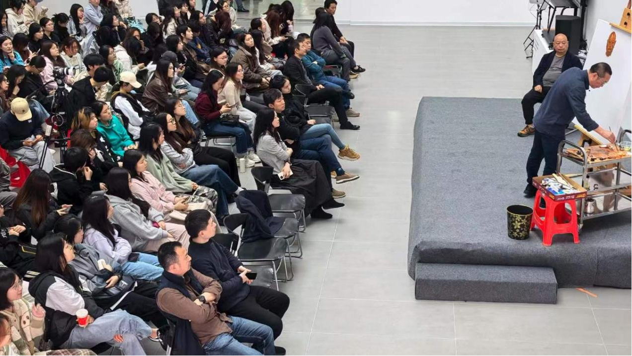 2026年4月15日,湖南师范大学美术学院美术楼中厅气氛热烈,“师道新传——高等美术教育名家示范教学讲堂”系列活动正式拉开帷幕。作为开篇第一讲,学院邀请中国美术学院副院长、著名油画家封治国教授来校进行人物写生示范教学与学术对话。