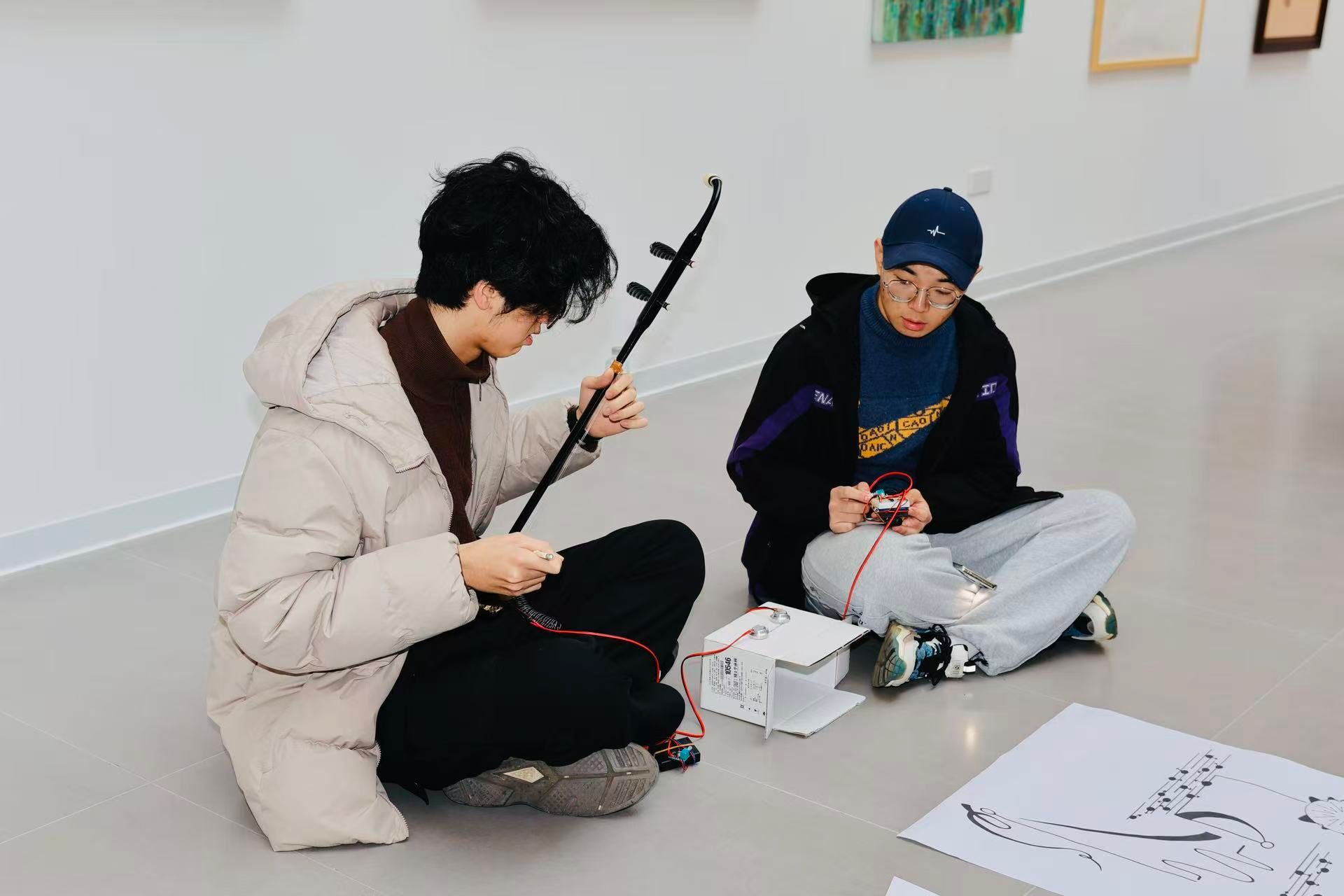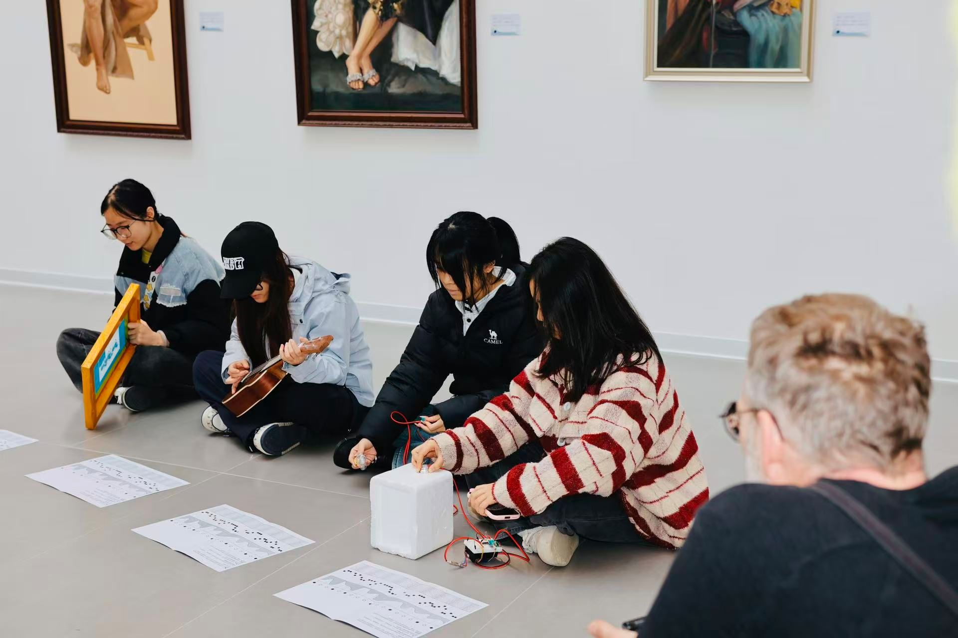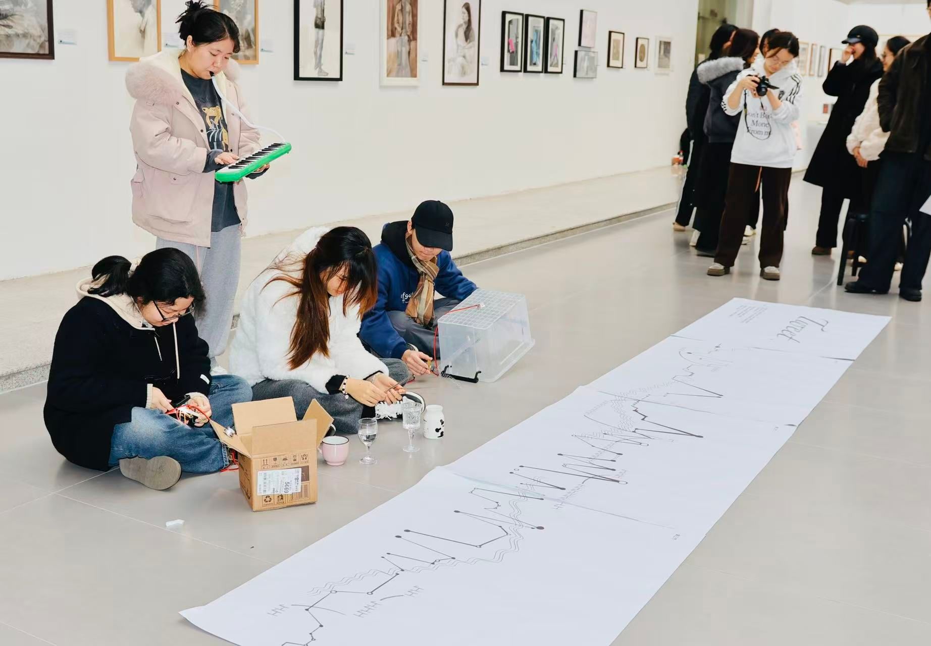12月19日,工作坊成果音乐会在学院举行。各小组运用自制乐器和图形乐谱,呈现了一系列融合自然声景、视觉符号与实时演奏的跨媒介作品,为观众带来耳目一新的视听体验。